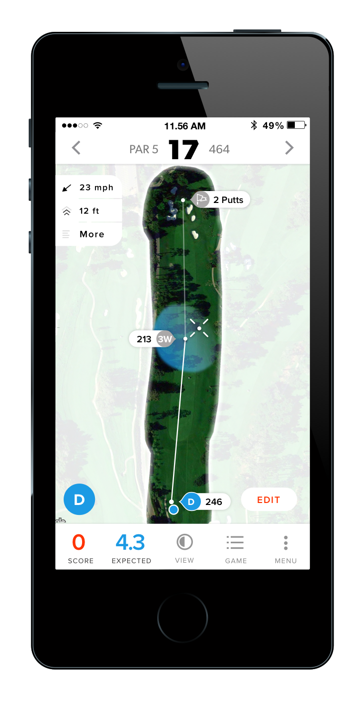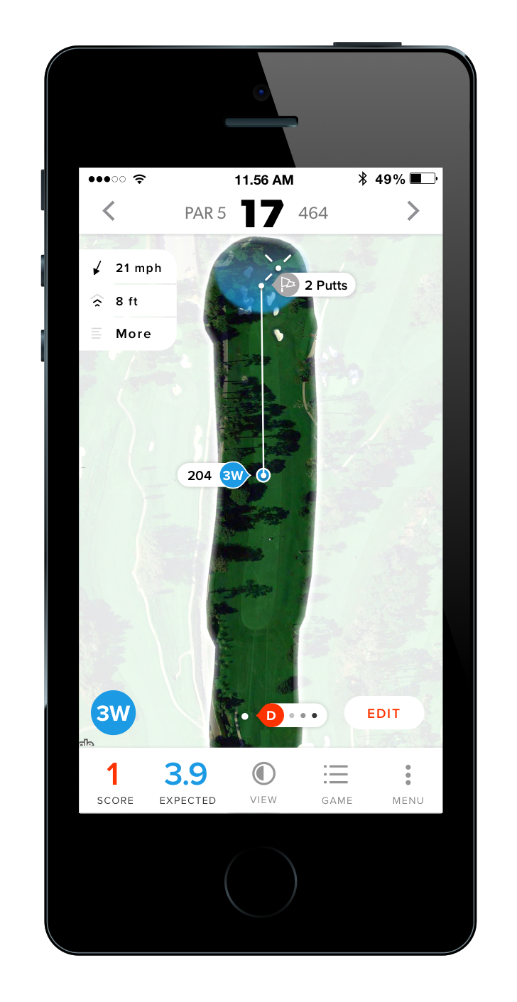 Game Golf is all about improving your golf performance. As a golfer, you track your game with Game Golf devices. These data can then be accessed in the form of data visualizations and insights for improvement. Smart Caddie is an in-app upgrade that takes improvement to the next level by coming up with context-sensitive golf shot suggestion. Among others, suggestions are based on your average golf club distances and continuously adjust to weather conditions, hole elevation, and risk of landing in lakes/bunkers.